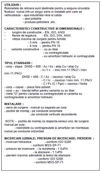 - ROBINETE DE RETINERE CU CLAPA TIP ANSI CLASA 125; 150, DN 2''÷12''