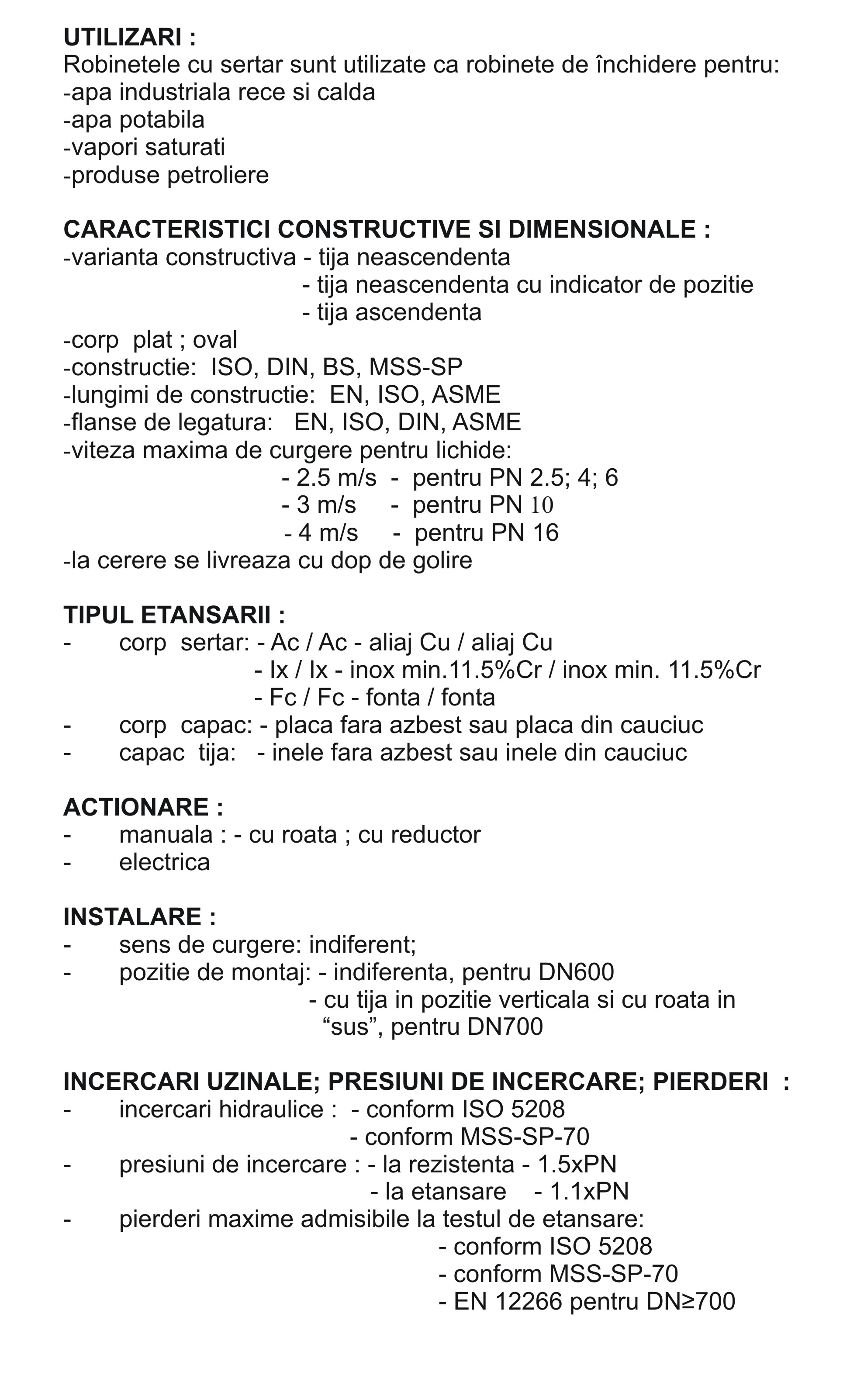 - ROBINETE CU SERTAR, CORP PLAT PN10; 6; 4; 2.5 DN40÷700